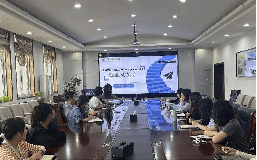 党委副书记李刚、硕士生专职辅导员王换、兼职辅导员单璐玉以及2024届毕业生参加了这次会议。此次动员会线上线下同步进行,由兼职辅导员单璐玉主持。