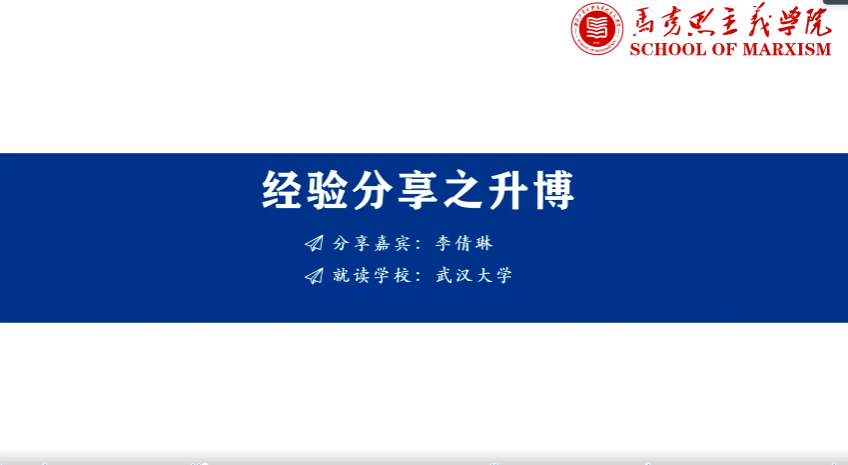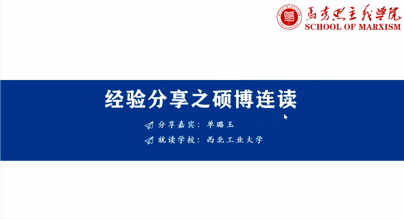 第四位分享者赵琛校友结合各高等院校的招聘公告与基本要求,重点分析了高等院校思政教师岗位的笔试内容与面试形式。此外,她向同学们分享了发布招聘公告的信息渠道,鼓励同学们树立自信心,提醒大家及时关注报考院校的面试信息,使同学们受益良多。
