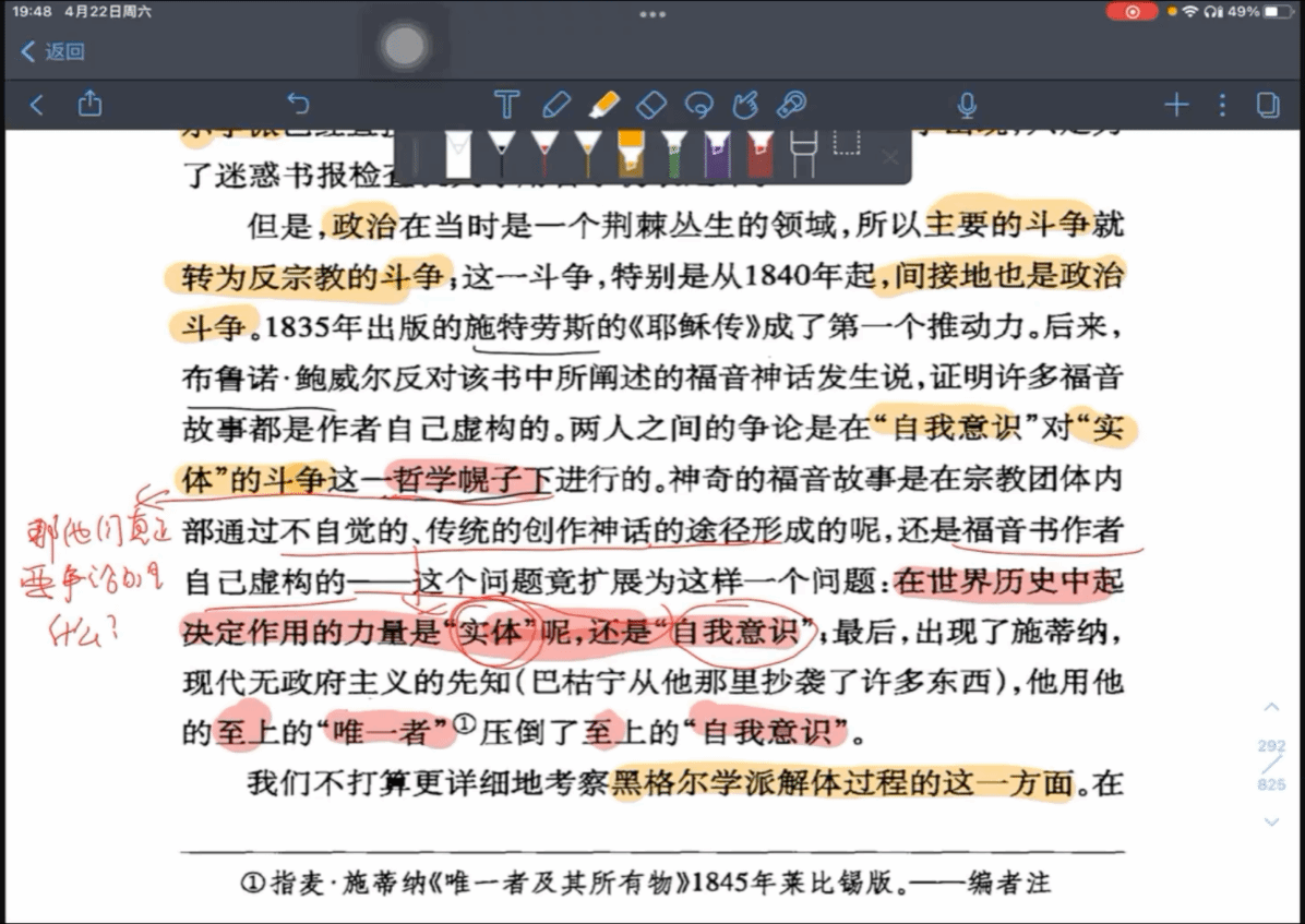 本次读书会同学们阅读完了《路德维希·费尔巴哈和德国古典哲学的终结》,就其中的关键问题进行了共同讨论,但是对于一些哲学术语理解不够透彻,今后需要在老师们的指导下,进行更为精细的文本阅读。