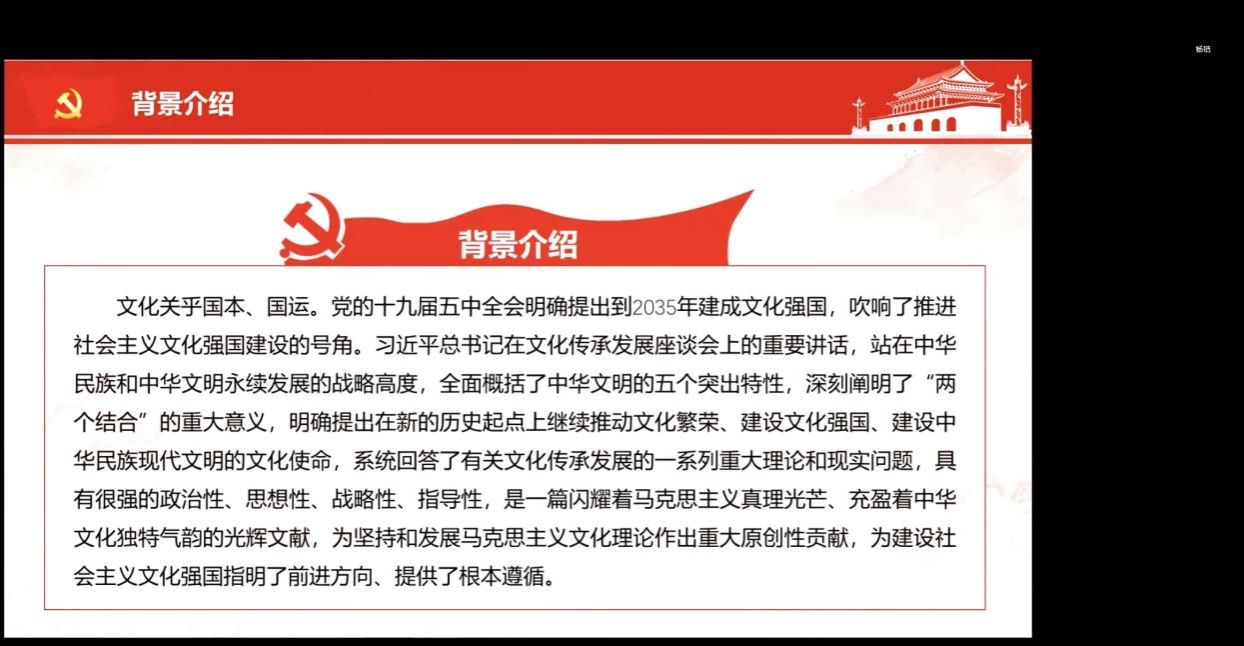 习近平新时代中国特色社会主义思想学习读书会第三十七期活动主题围绕《习近平在文化传承发展座谈会上的讲话》进行学习研讨。本次读书会由电玩城游戏