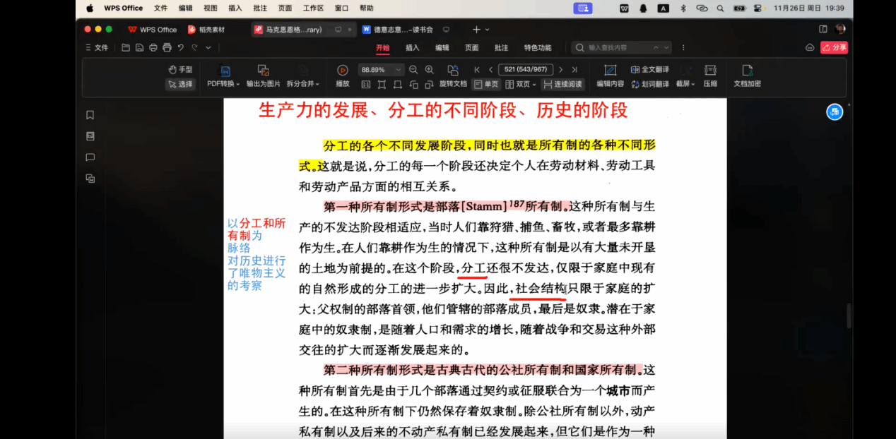齐承水老师主持,张云龙老师、山东大学张晋铭老师、烟台大学田菁老师与硕博同学们共同阅读了《德意志意识形态》。