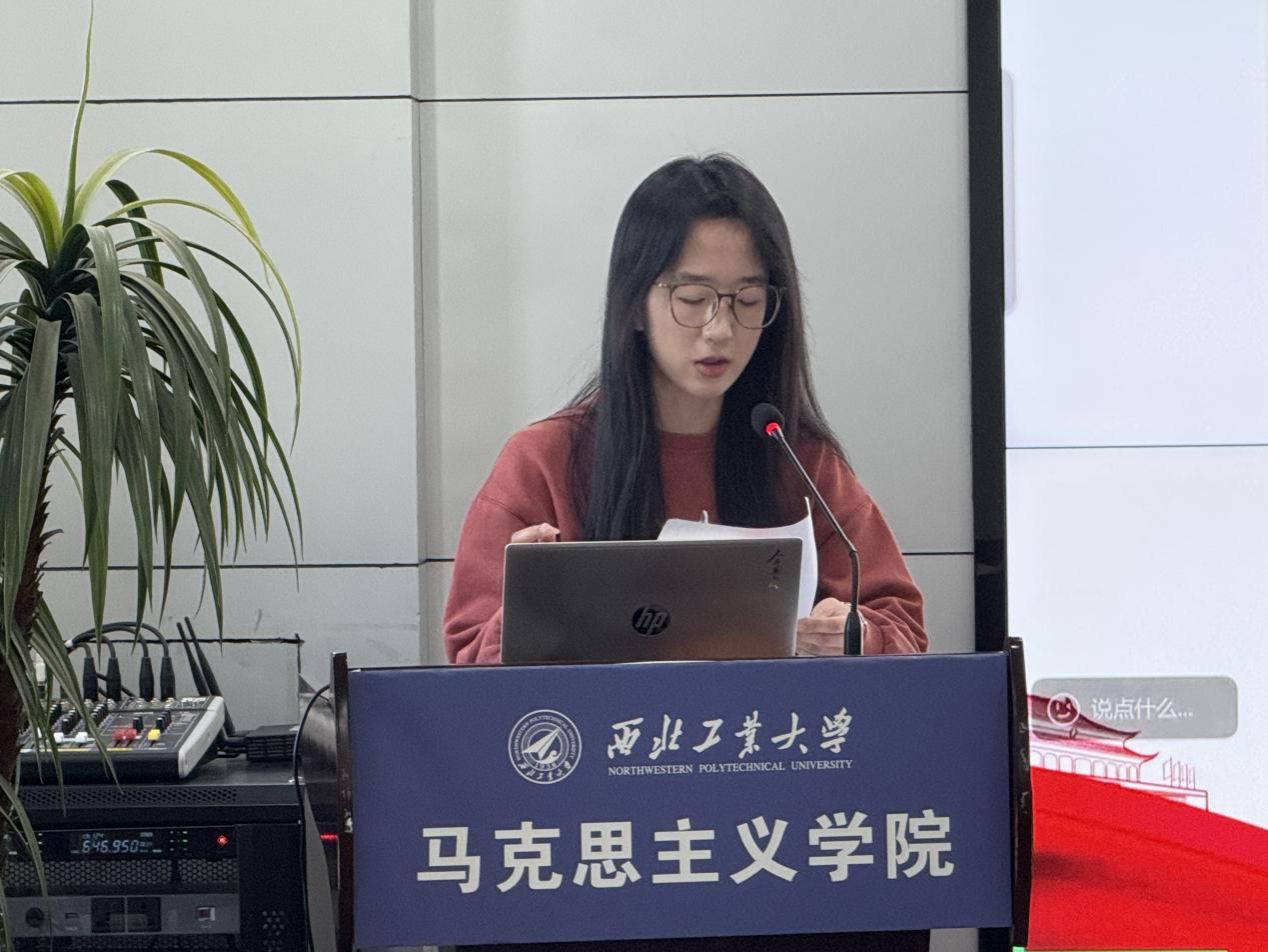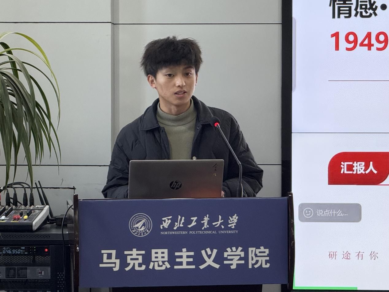 学生演讲环节,博士生王贵潮以《情感・处境・行为:1949年中共在长沙专区征粮工作研究》为题,聚焦新中国成立初期长沙专区征粮工作的复杂性,展现了党的群众工作方法与历史实践的生动结合。硕士生俞思颖以《中国工合精神的生成机制和启示:毛泽东〈实践论〉的视角》为主题,依托《实践论》的理论框架,剖析中国工合精神的形成逻辑与当代价值。