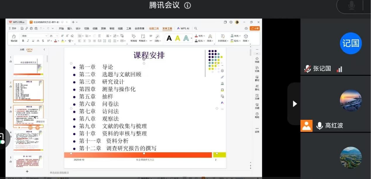 高红波根据电玩城游戏 前期相关安排部署情况,简要说明了思政实践课关于社会调查研究方法教学的重要性,并结合思政实践课理论教学要求,提出社会调查研究方法课程的教学内容设计与具体课时安排。同时说明了通过各方共同努力,综合参考多种社会研究方法教材和著作,调研总结部分高校社会研究方法课程经验,课程组顺利完成思政实践课社会调查研究方法课件主体内容设计。高红波详细介绍了全篇各个章节的基本情况和部分章节的重点教学内容与注意事项,并提出为了进一步完善课件内容,课程组全体老师可点对点地提出有针对性的修改意见和建议。