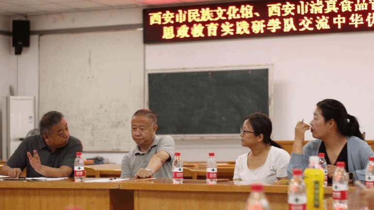 院长助理赵海霞副教授介绍了本次社会实践活动的目的和意义;刘忠馆长对西安市民族文化馆的发展近况、常规活动进行了介绍;王胜主任对当前民族政策、西安市民族成分概况等情况进行了详细说明,并为实践队成员介绍了相关民族工作的最新情况。双方还针对民族文化的交往交流交融、传承中华优秀传统中的守正和创新、如何依托目前的资源实现更好发展、如何借助高校力量开展工作等问题进行了深入探讨。