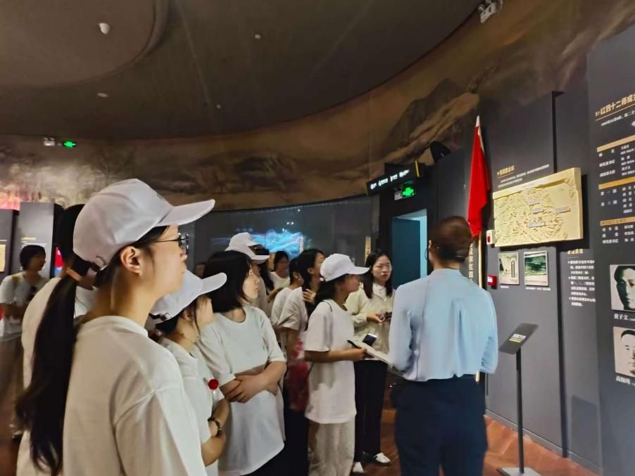 上午,实践队抵达陕甘边革命根据地照金纪念馆参观学习。在讲解员引导下,队员们有序参观馆内陈列的革命文物与历史照片,系统了解陕甘边革命根据地创建发展的艰辛历程,重点领悟西北革命根据地战略支点、红军长征落脚点、抗日民族统一战线出发点的“两点一存”历史地位,聆听刘志丹、谢子长、习仲勋等革命先辈的感人事迹。实践队员深受触动,纷纷表示要赓续红色血脉,以照金精神为指引,在新时代新征程中践行初心使命。
