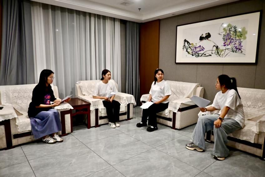 晚上,实践队学习重温习近平总书记在纪念中国人民抗日战争暨世界反法西斯战争胜利70周年大会上的重要讲话,并开展活动总结复盘。在实践队负责人韩瑞欣的领学下,各实践成员纷纷发表学习心得体会,现场气氛活跃。随后,各小组分别汇报思政课宣讲活动准备情况,针对其中不足提出改进措施。