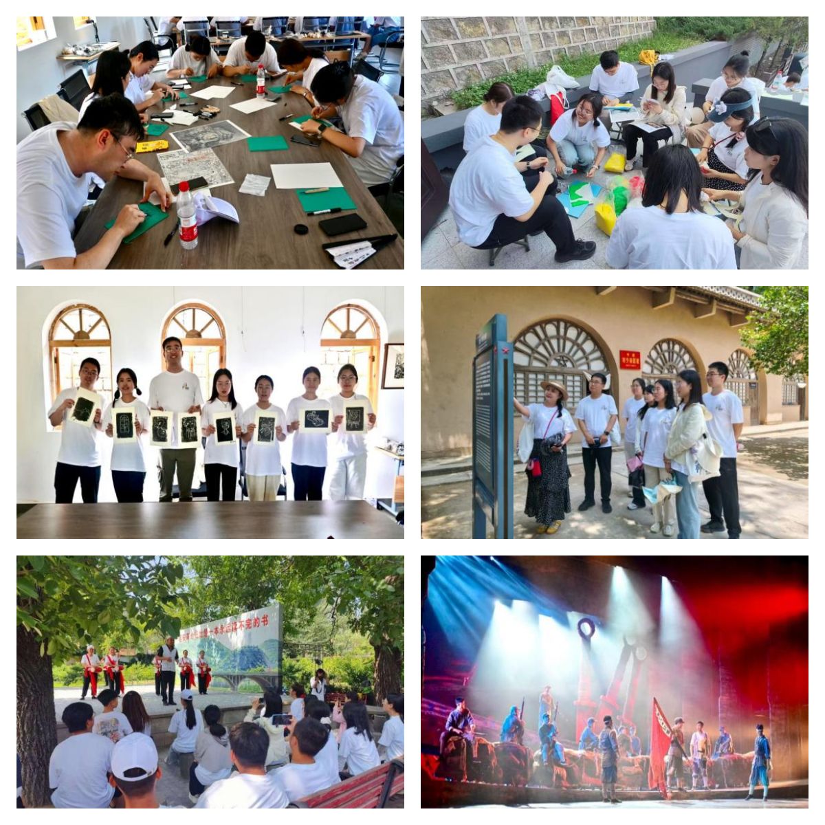 在八路军西安办事处纪念馆,《我要去延安》情景演绎实践活动的开展,再现了战争年代进步青年奔赴延安、接受马克思主义信仰洗礼、奔赴抗日前线奋勇杀敌的革命事迹。在甘泉雪地讲话旧址,协同参与“寻找信封”特色实践活动,拼凑线索还原先辈们革命故事,追忆先烈英勇事迹,在长征精神的感召下汲取坚定前行的力量。在王家坪革命旧址,一起观看旧址内小剧场带来的歌曲《南泥湾》、舞蹈《安塞腰鼓》等,感受延安这片热土的红色底蕴和风土人情。在直罗镇战役纪念馆,队员们一道开展《上兵伐谋》沙盘制作特色实践,领悟“集中兵力各个击破”的精妙战略战术,体会先辈绝境求胜的斗争精神。在延安文艺纪念馆,大家沉浸于《一笔一刻》版画制作特色实践活动,将参观时的感悟融入刀笔之间,为这段红色寻访赋予了具象寄托。在延安红秀剧场,跟随《延安 延安》情景演绎,共同解锁“人在戏中,戏在心中”的交互体验,进一步加深对延安精神的深刻理解。