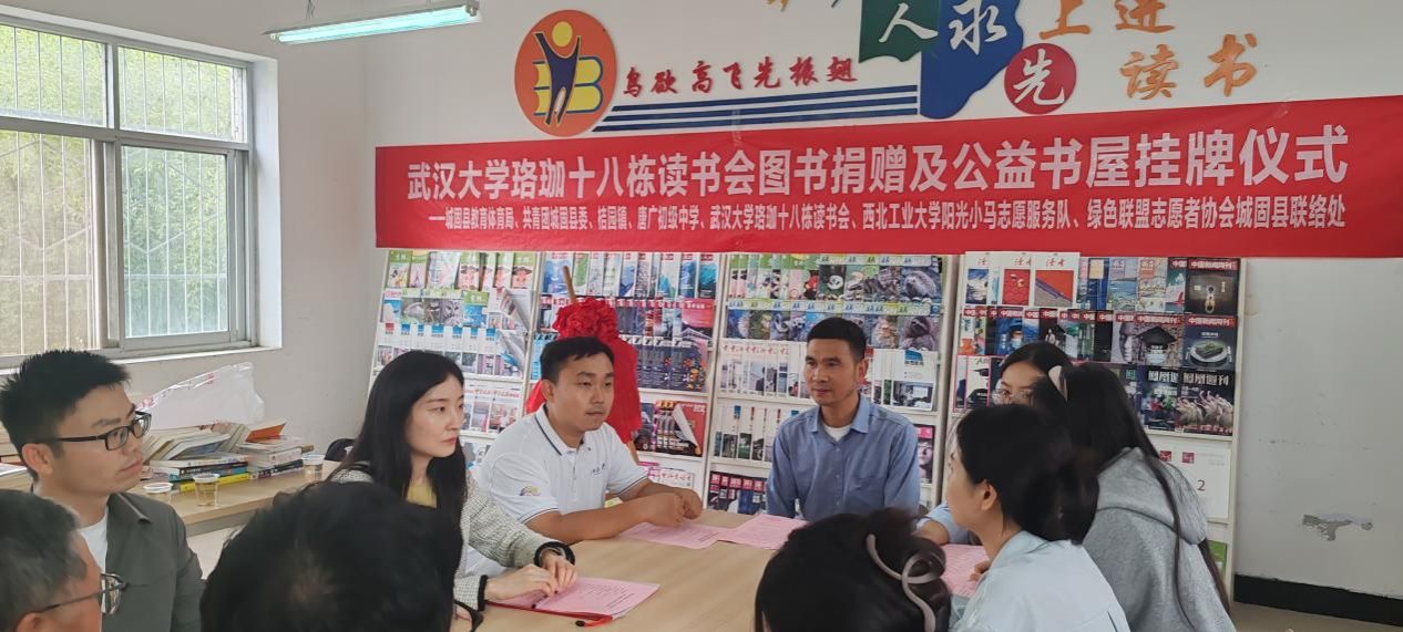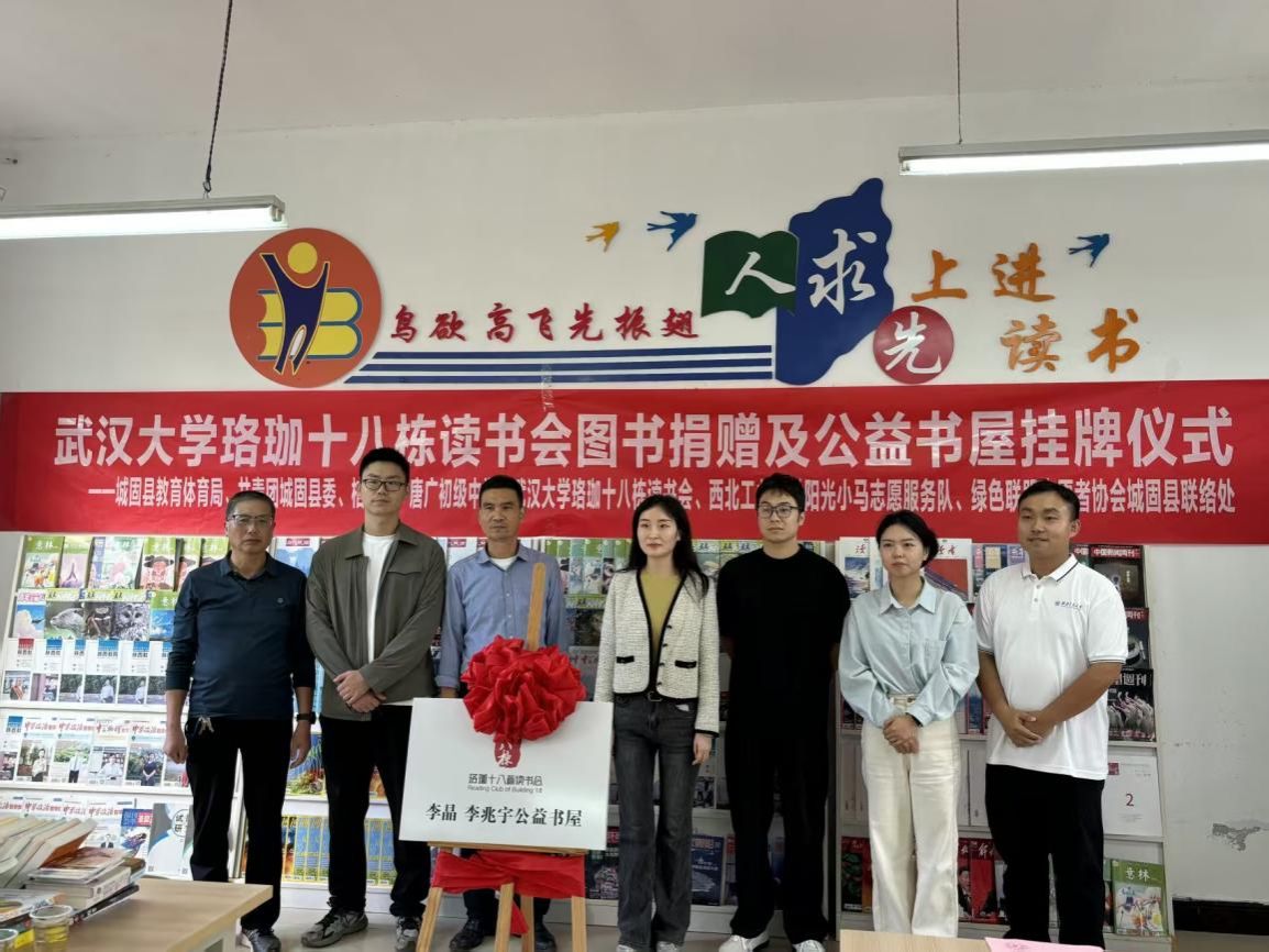 2025年9月19日下午,西北工业大学阳光小马志愿服务队联合武汉大学珞珈十八栋读书会赴陕西汉中城固县桔园镇唐广初级中学举行公益书屋挂牌仪式。桔园镇团委副书记何佳萤、共青团城固县委张鑫、唐广初级中学副校长付建华等领导老师出席了本次活动,活动由唐广初级中学图书阅览室负责人党洪德老师主持。