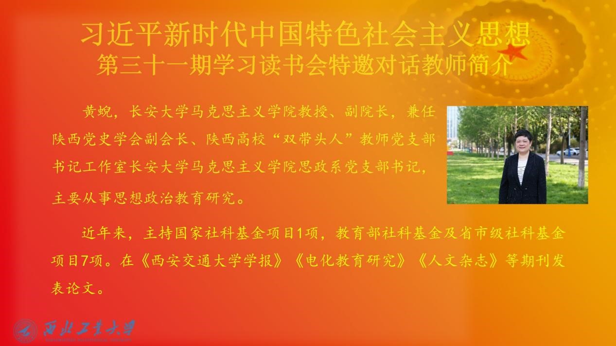 专家简介:黄蜺 长安大学电玩城游戏 教授、副院长。兼任陕西党史学会副会长、陕西高校“双带头人”教师党支部书记工作室长安大学电玩城游戏 思政系党支部书记。主要从事思想政治教育研究。近年来,主持国家社科基金项目1项,教育部社科基金及省市级社科基金项目7项。在《西安交通大学学报》《电化教育研究》《人文杂志》等期刊发表论文20余篇,出版专著1部。