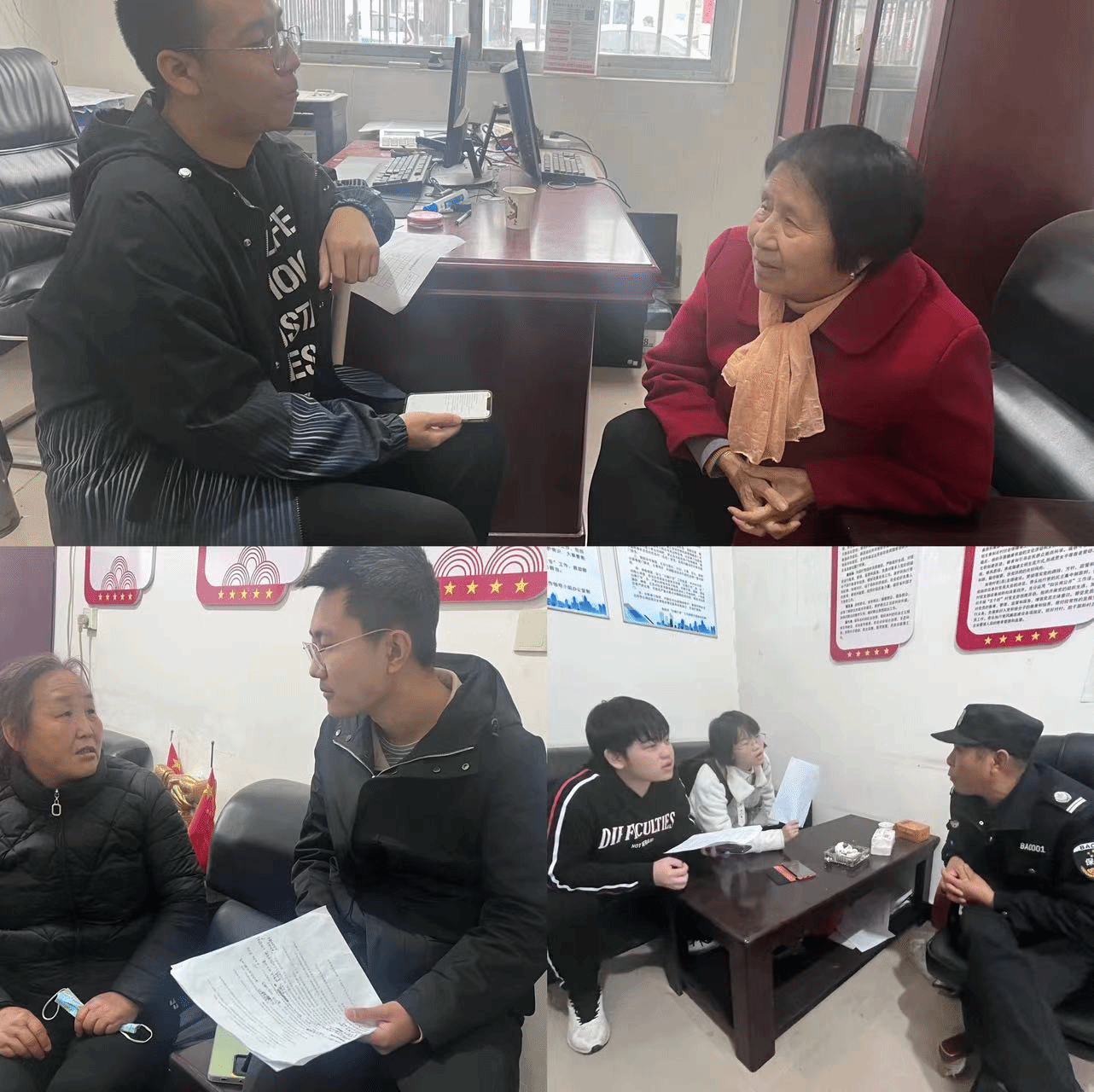 六名同学两两一组分别对村子上的前任书记、普通村民、乡村教师、村医进行采访,从不同受访者的口述中的角度了解改革开放以来乡村基层治理的变迁过程、意义、干部群众在社会转型过程中的收获、面临的挑战及解决办法,由此大大加深了学生对于改革开放中国乡村的巨大变化的了解,深刻认识到改革开放是农业农村发展的根本动力,只有坚定不移全面深化农村改革,全面推进乡村振兴,才能增强农村社会发展活力,实现农村社会长治久安。