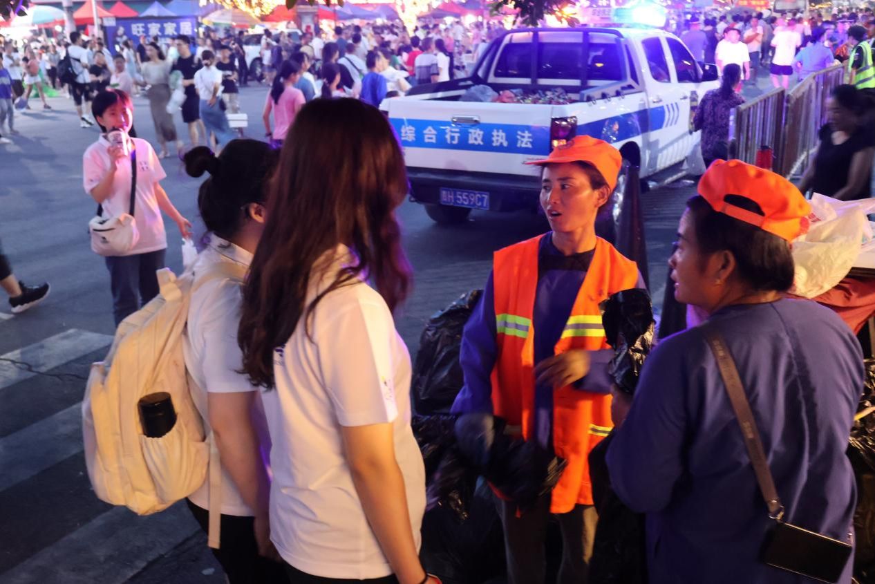 7月14日,实践队来到了村超现场,虽然隔天下午才开始激情四射的正式比赛,此时的村超现场早已人声鼎沸,许多身着球服的小朋友在绿茵场上飞驰,大人们或与小朋友一起玩耍,或参与到明天正式比赛的热烈讨论中。实践队与一位带小朋友来踢球的家长了解后得知,榕江拥有足够的免费标准的足球场,有着浓厚的足球运动氛围,幼儿园设有相关课程,作为家长全力支持小朋友踢球,不仅可以锻炼身体,也可以避免小朋友沉迷网络。榕江县正依托“村超”品牌,基于全民健身的体育文化,立足民族特色,全力发展乡村旅游,我们也了解到随着“村超”的影响力越来越大,上万人被吸引到这个小县城,地方政府高度重视,为大家提供更好的服务,为“村超”的安全顺利开展做好保障。