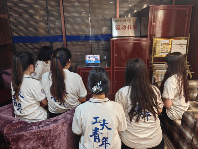 为巩固实践成果,贯彻主题教育“学思想、强党性、重实践、建新功”总要求,强化凝心铸魂,当天晚上,实践队员们在酒店图书室以“视频+文本”的方式集体学习研讨《习近平瞻仰延安革命纪念地:弘扬伟大建党精神和延安精神 为实现党的二十大提出的目标任务而团结奋斗》这一重要讲话。习近平总书记在讲话中指出:“延安革命旧址见证了我们党在延安时期领导中国革命、探索马克思主义中国化时代化的光辉历程,是一本永远读不完的书,每次来都温故而知新,受到深刻教育和启示。”通过本次学习,大家一同回顾革命历史,重温党的优良传统和作风。作为新时代青年,将大力弘扬伟大建党精神和延安精神,以实际行动推动党史学习教育与“大思政课”深度融合,引导广大青年坚定不移听党话、跟党走,为推进中国式现代化凝聚磅礴奋进力量!