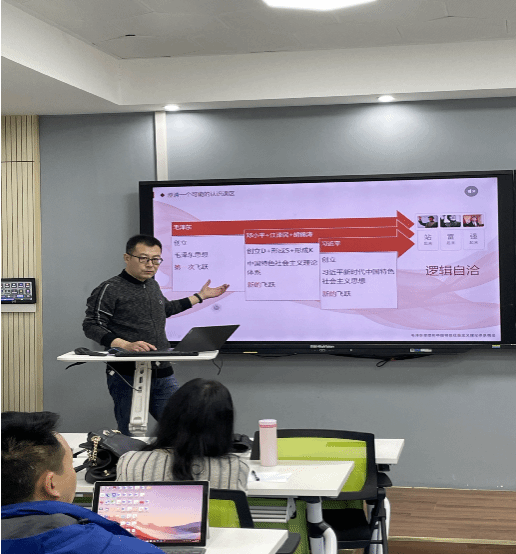 副院长郭松教授分别进行本科生思政课《毛泽东思想和中国特色社会主义理论体系概论概论》和研究生思政课《新时代中国特色社会主义理论与实践》的教学示范,马克思主义中国化研究系全体教师参加观摩,马克思主义中国化研究系主任高旭红和教学主任华艳君主持了本次活动。