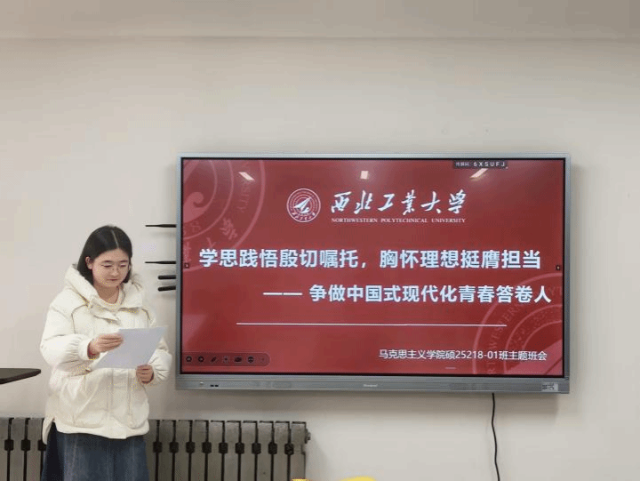 为深入学习党的二十届四中全会精神,引导青年学生将个人理想融入国家发展大局,11月17日,2025级硕士一班召开“学思践悟殷切嘱托,胸怀理想挺膺担当 —— 争做中国式现代化青春答卷人”主题班会,主题班会由张新婧主持。