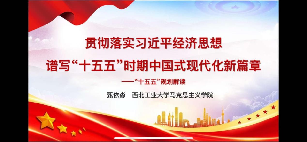 首先,西北工业大学博士生甄依淼同学以《贯彻落实习近平经济思想 谱写“十五五”时期中国式现代化新篇章》为题进行分享。她引导同学们深入领会党的二十届四中全会重要意义,深刻领会和把握“十五五”内涵意蕴,并从“十四五”规划完成情况、国内外形势和中国式现代化任务、“十五五”规划主要内容、“十五五”规划亮点特点四个部分展开介绍。尤其第四部分,多角度分析了加快构建高水平社会主义市场经济体制,推动高质量发展的作用维度。
