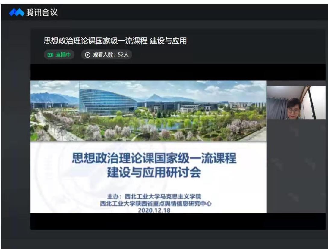 、西北工业大学陕西省重点舆情信息研究中心全国范围率先举办的思想政治理论课国家级一流课程建设与应用研讨会于2020年12月18日上午在腾讯会议顺利举办。来自北京大学、复旦大学、武汉大学等多个高校的获批国家一流课程(思政类)的专家学者齐聚一堂,传经送宝,就如何更好地开展思想政治理论课国家一流课程建设的经验和今后举措进行了研讨交流。