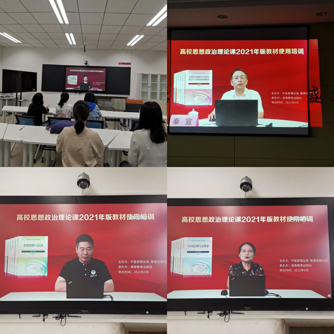 组织全体思政课专兼职教师参加了教育部高校思想政治理论课2021年版教材使用培训会。各位老师通过收看直播、回放、集体备课等形式圆满完成了全员培训。