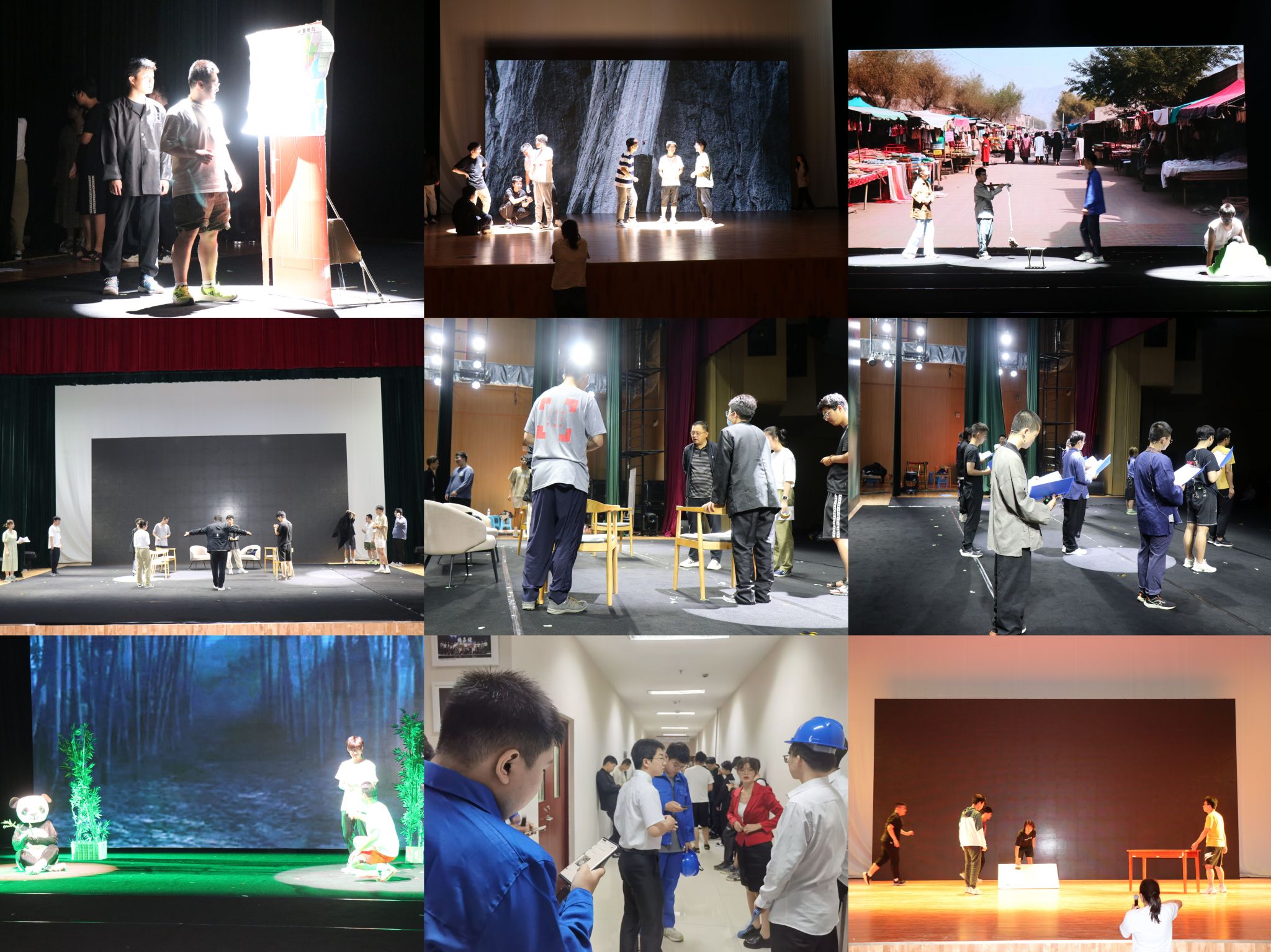 为进一步深化思政课改革创新,试行互动式、体验式、沉浸式教学改革,充分发挥学生主体作用,历时2个多月精心编创的《概论》课程剧,旨在借助“展演”这种生动的展现形式,让思政课“活”起来。在撰写剧本、组织彩排、剧目联排的过程中,思政课教师和参演的随堂上课的学生克服了专业不同班、学习不同步,兼顾上课考试等实际困难,大家始终以饱满的情绪投入到展演筹备工作中,从构思剧本、剧本创作、角色塑造、道具制作、舞美设计和舞台调度等,全部由同学们协同完成。