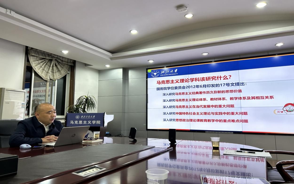 代玉启教授从学科建设动向、学科热点扫描、学科研究方法和学人成长理路四方面进行报告。在“学科建设动向”方面,代玉启教授指出马克思主义理论学科应该深入研究马克思主义经典著作历久弥新的思想价值、深入马克思主义理论体系、教材体系、教学体系及其相互关系、深入研究马克思主义在当代发展的重大问题、深入研究中国特色社会主义理论与实践中的重大问题、深入研究思想政治理论课教育教学中的重点难点问题,关联马克思主义哲学、政治经济学和科学社会主义,以哲学、历史、政治学、教育学等为依托,找准马克思主义理论的属性定位、功能定位和社会定位。在“学科热点扫描”方面,代玉启教授给出了基于经典文献、最新政策、理论阅读、学科交叉、教学困惑和实践观察的建议,指出选题在考虑自身兴趣的同时,还要有社会需要且研究应具有延展性。在“学科研究方法”方面,代玉启教授认为在现有的文本阐释式、政策解读式和问题解决式研究方法外,我们还要拓展研究角度,优化研究方法,更新研究维度。在“学人成长理路”方面,代玉启教授对师生提出了期许,希望大家阅读广博,研究专深,提升理论智慧和实践智慧,形成自己的语言特色和研究风格。