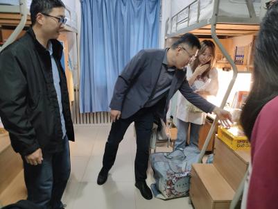 党委副书记耿云辉、辅导员董润、学工主管刘敏一行走进学生宿舍,开展了“中秋送温暖”活动。