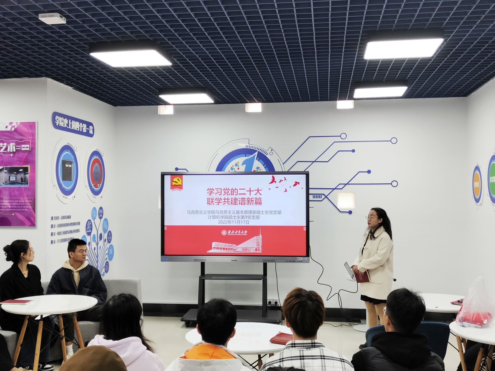 党员活动室开展“学习党的二十大,联学共建谱新篇”主题党日活动,本次会议由马克思主义基本原理系硕士生党支部书记王慧新主持。