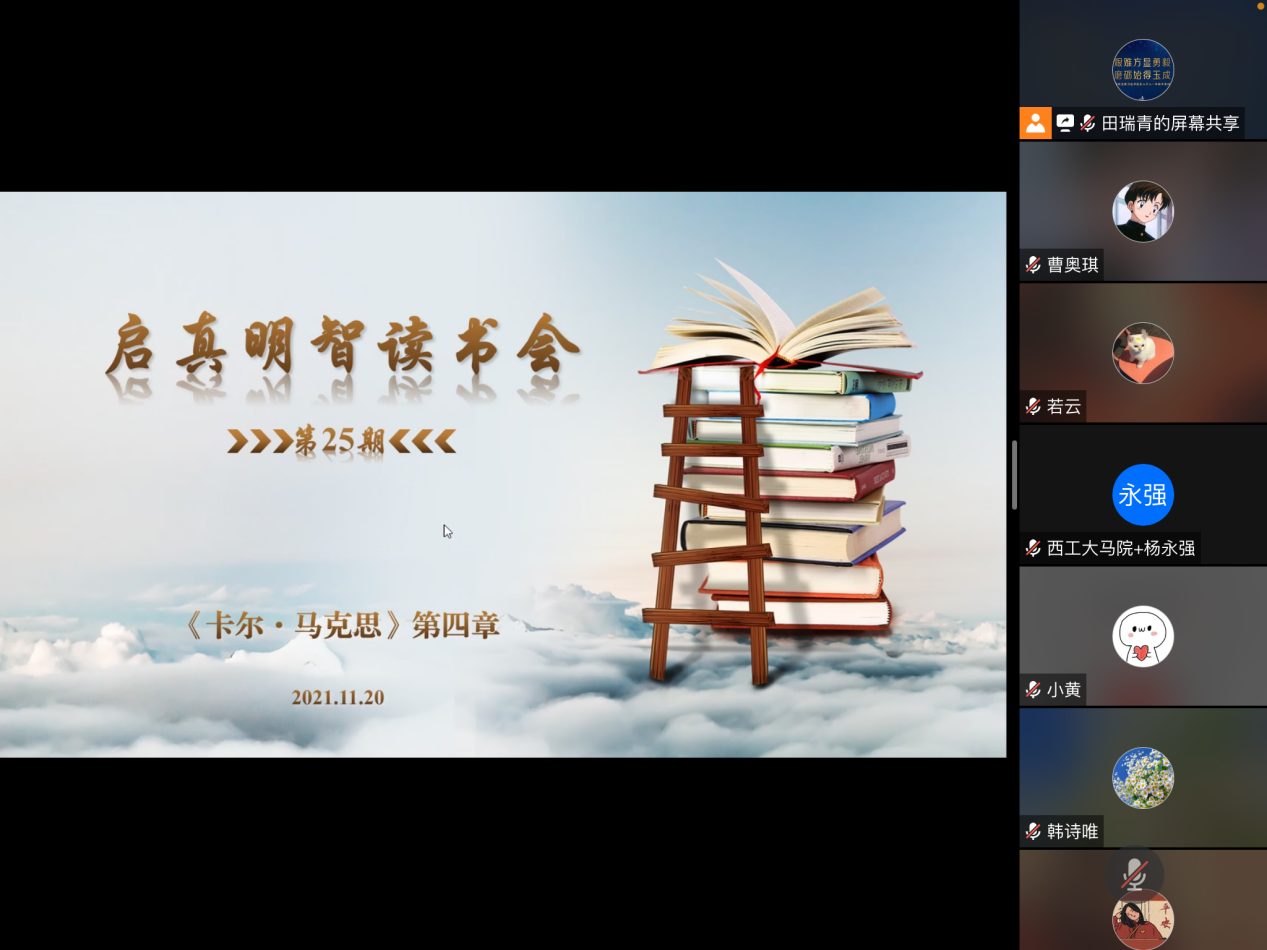 教授张云龙和助理教授杨永强参加本次读书会,读书会由硕士生田瑞青主持。