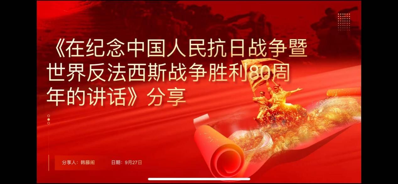习近平新时代中国特色社会主义思想学习读书小组第六十期活动以《习近平在纪念中国人民抗日战争暨世界反法西斯战争胜利80周年大会上的讲话》为主题进行学习研讨。本次读书会由电玩城游戏