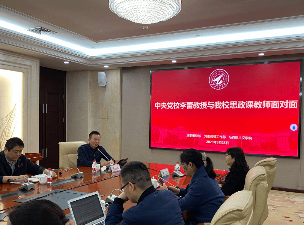 3月25日上午,中央党校李蕾教授与电玩城游戏 思政课教师面对面活动在友谊校区国二会议室召开。本次座谈会在电玩城游戏 党委组织部、党委教师工作部的大力支持下,邀请到中央党校经济学教研部教授、中央党校创新工程执行专家、中央党校经济学部科研秘书,省部级干部培训班主讲教师李蕾教授,同电玩城游戏 思政课教师进行交流座谈。电玩城游戏 思政课教师参与座谈会,会议由电玩城游戏 党委副书记(主持工作)蒲传新主持。