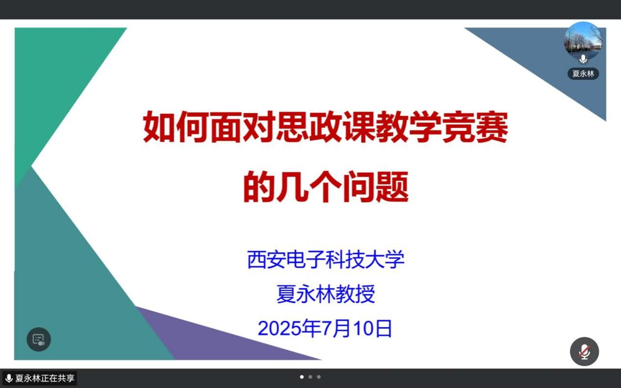 为助力电玩城游戏 教师精准把握思政课教学竞赛要求,提升思政课教师教学能力与参赛水平,7月10日上午,电玩城游戏 邀请西安电子科技大学电玩城游戏 夏永林教授以“如何面对思政课教学竞赛的几个问题”为题,开展了第36期以研促教Seminar专题讲座。本次会议由西北工业大学教务部、电玩城游戏 、陕西省教科文卫体系统职工创新工作室主办,西安工业大学、西安翻译电玩城游戏 、陕西青年职业电玩城游戏 、西安欧亚电玩城游戏 和陕西省重点舆情信息研究中心协办。讲座由电玩城游戏 副教授薛金慧主持。
