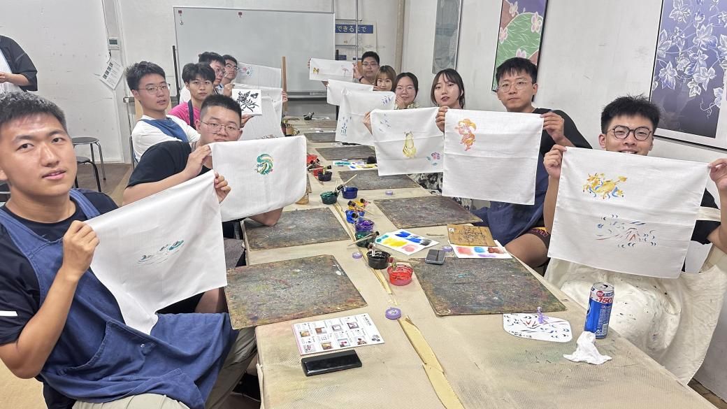 的几位同学对这门学科产生了浓厚的学习兴趣,下午在一间传统的町屋中学习京友禅的做法,同学们认真倾听并出色完成作品,对京都的文化有了更进一步的了解。