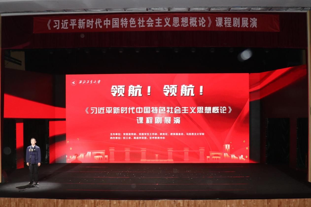 2023年11月27日晚,由西北工业大学党委宣传部、党委学生工作部、教务处、教育基金会、电玩城游戏 主办,校工会、离退休党委、艺术教育中心协办的第二届“领航!领航!《习近平新时代中国特色社会主义思想概论》(以下简称《概论》)课程剧”在长安校区南山艺堂举行。陕西师范大学、西北大学、西安音乐电玩城游戏 、西安邮电大学、西安外国语大学、咸阳市委党校、渭南师范电玩城游戏 等十余所高校同仁莅临现场观摩指导。